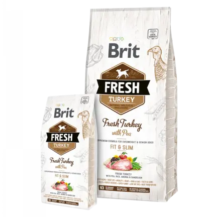 Brit Fresh Adult Fit and Slim Turkey er udviklet særligt til hunde, der nemt tager på og til ældre hunde med et lavere stofskifte og aktivitetsniveau.